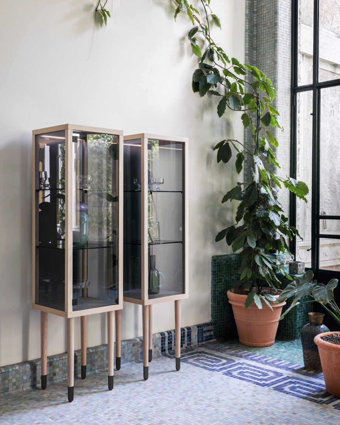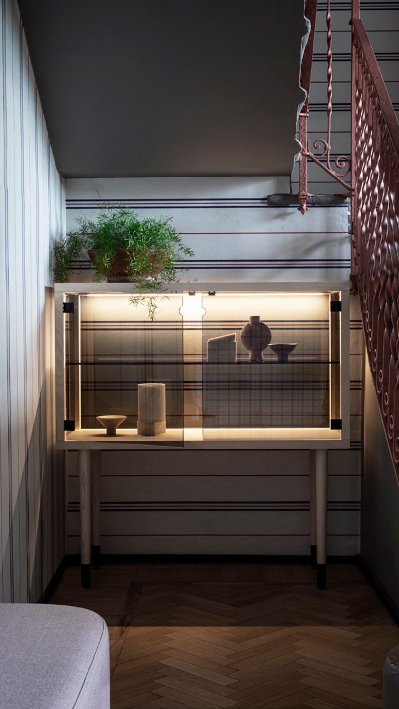 Juno is a container of stories. It is the attempt to reawaken the romantic side of the house, lost in the contemporary frenzy. It is the will to revive the concept of the glass cabinet, with tall legs, squared shapes, and neutral colours. It is the need to appease the sense of belonging to the past.