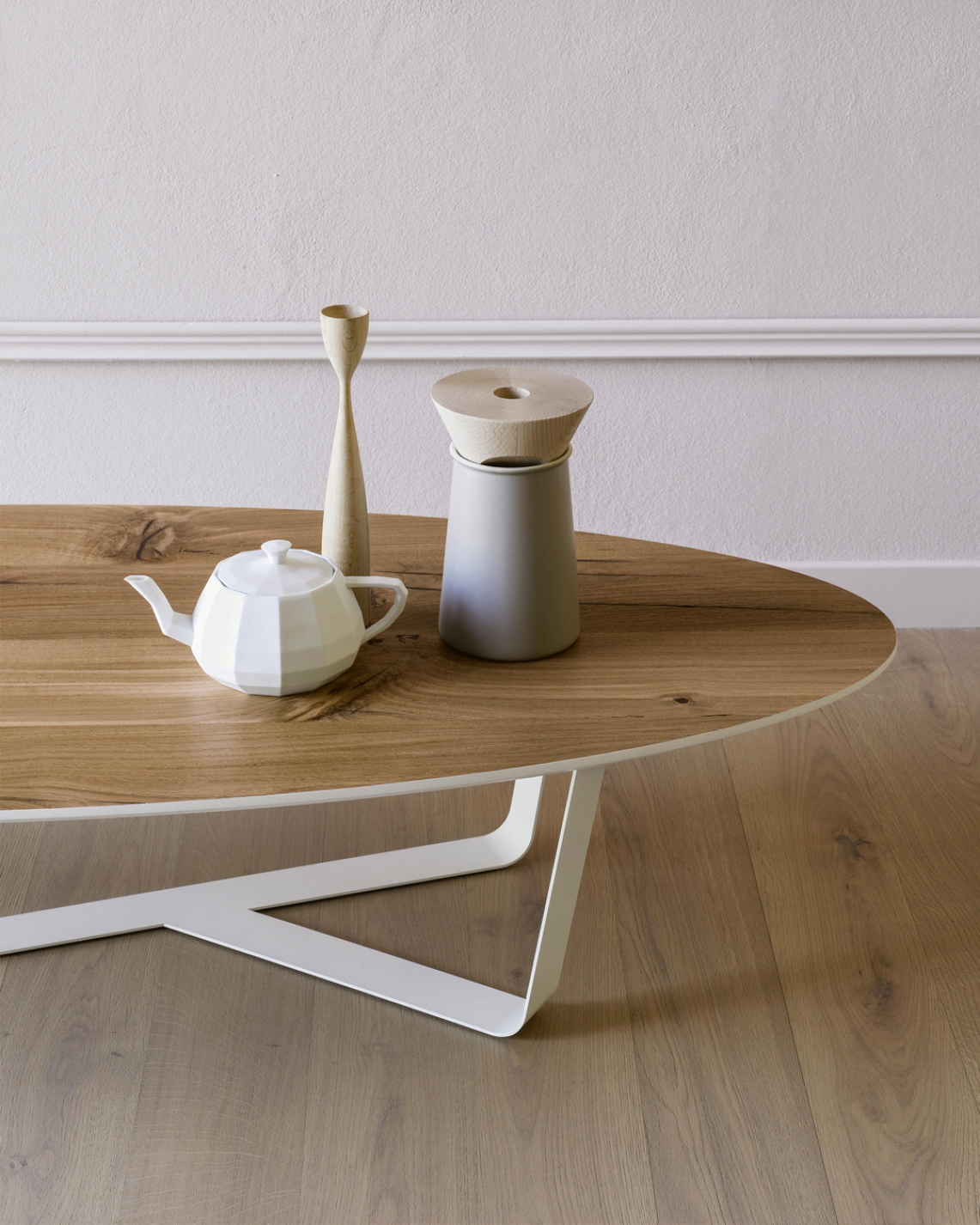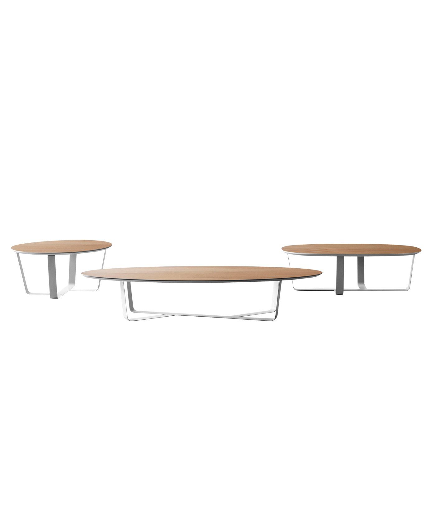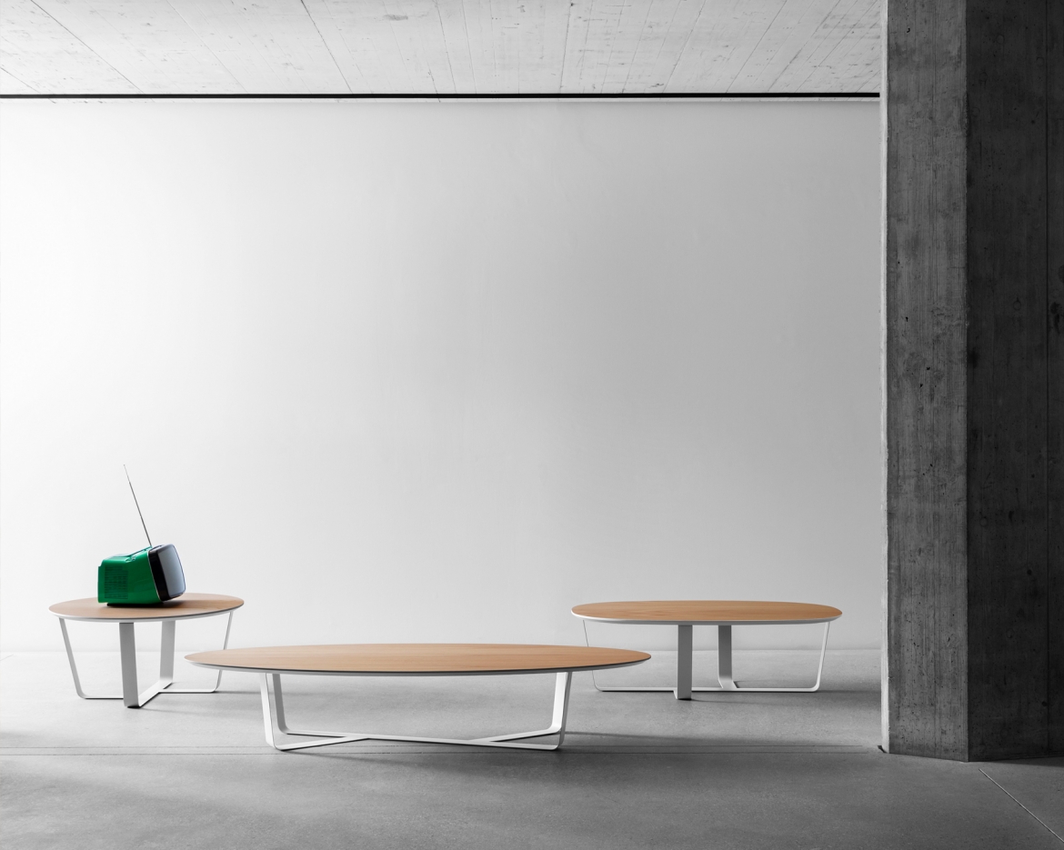 Bino is a set of three slender, dynamic coffee tables. A slender strip of metal creates the base for these aesthetically essential coffee tables.