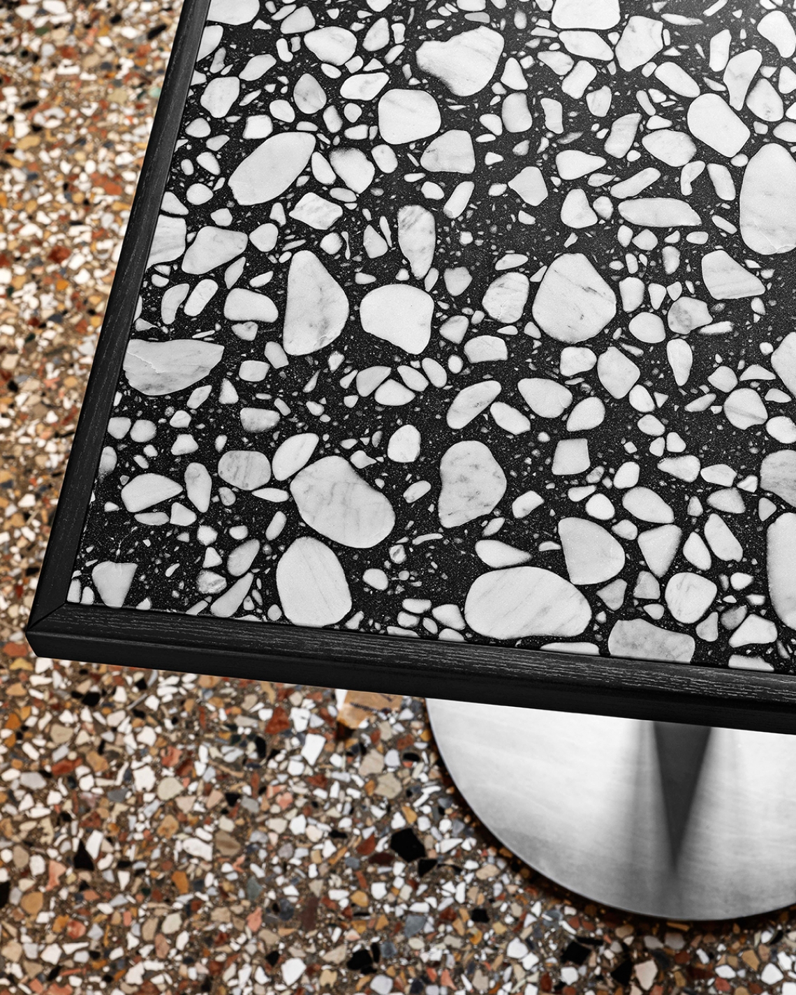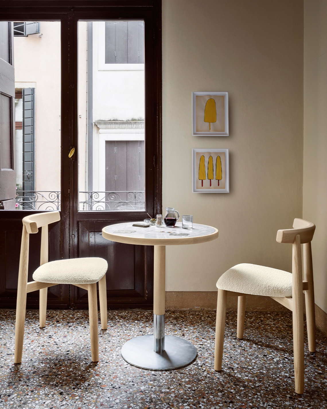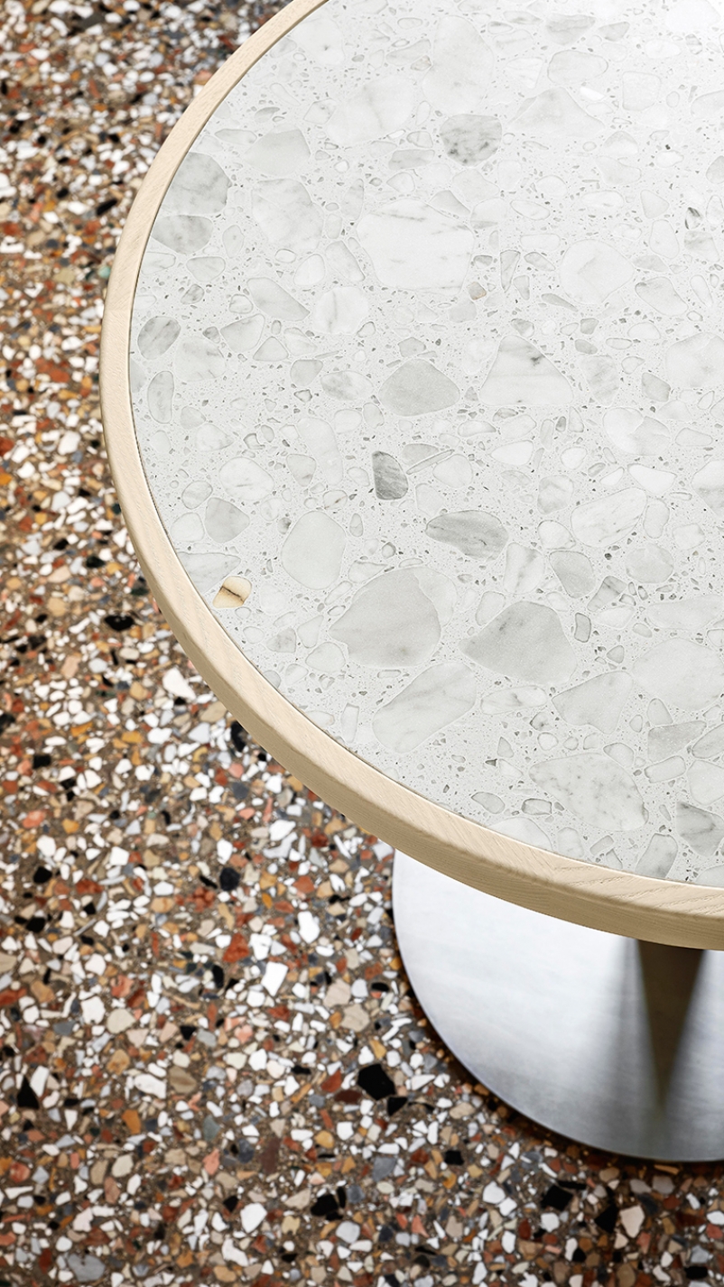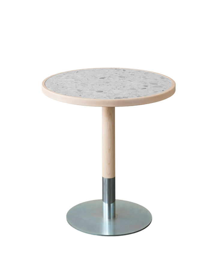 Drawing inspiration from the seventies, Briscola is a noble revisitation of the bistro tables where card games were played. It has the flavour of the Italian bars of yesteryear, amid coffee cups and warm informality. The top is supported and framed by an ash-wood tray, while the base, in black or galvanised metal, roots it firmly in the present.