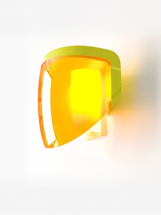 The Moto wall light designed by Jean-Baptiste Fastrez revisits the aesthetic codes of motorcycle equipment. Hieratic, ultra-reflective, producing numerous optical effects, when lit it diffuses slightly light through its translucent visor.