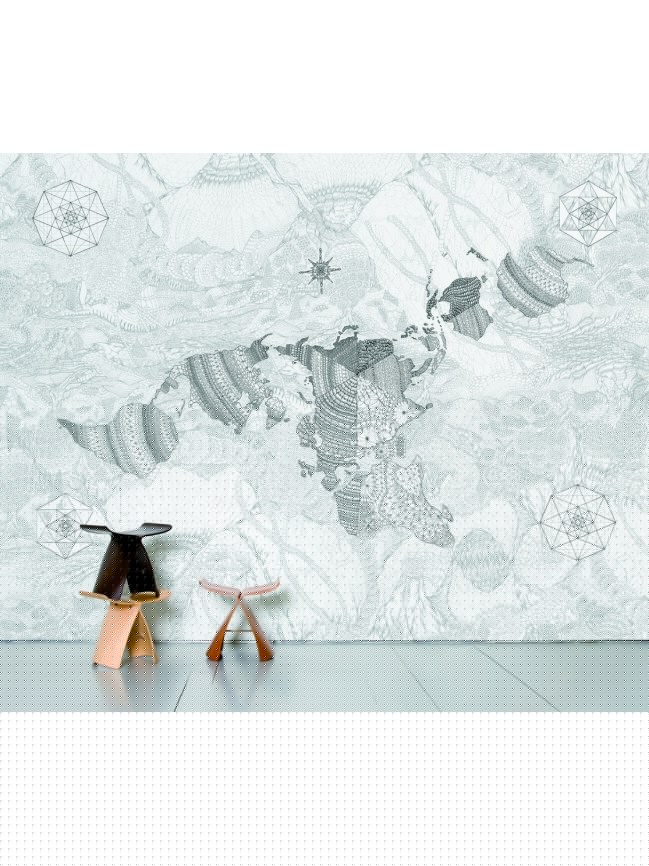 Printed non-woven paper, each decoration measures 372 x 300 cm and is presented as 8 strips to gather, easily to stick on the wall (with a special non-woven glue). All decorations can be cut again from height and width to be adapted to all wall dimensions.