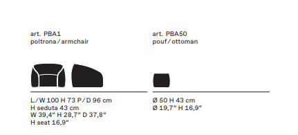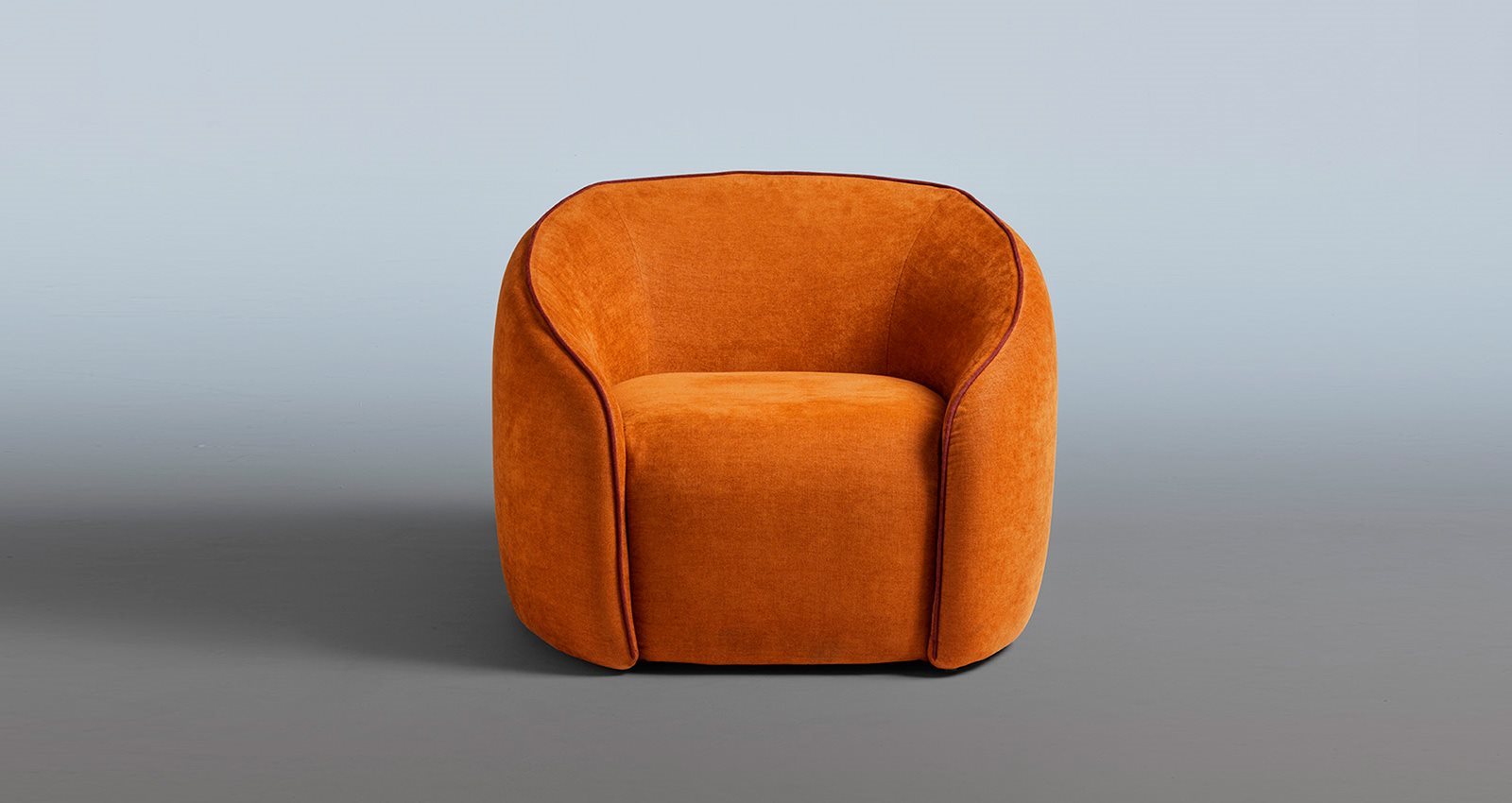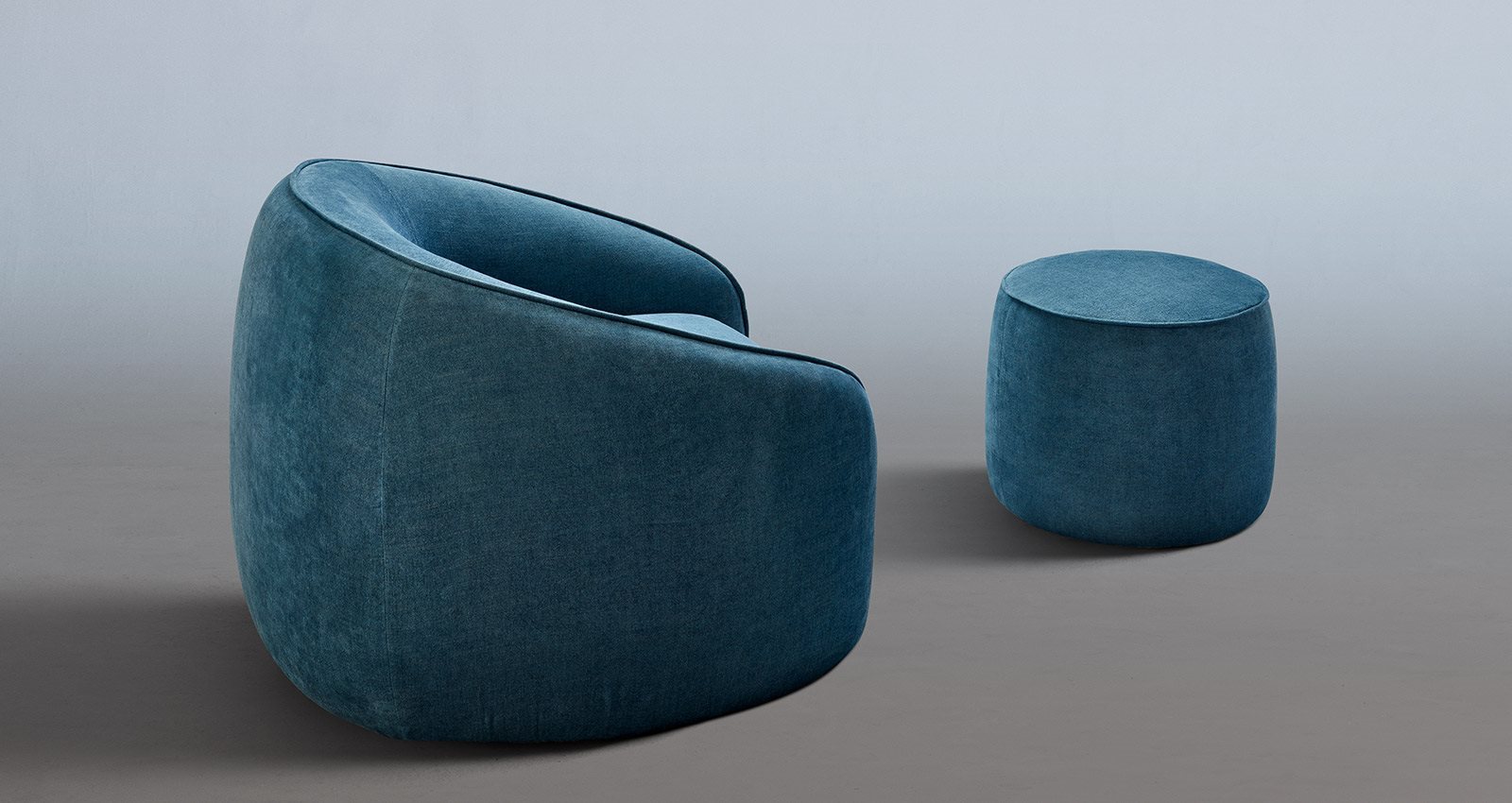 An armchair composed of two volumes, for a striking theatrical presence. Baloo has abundant forms that make it the true protagonist of any space. The edge in color tone or in different color give a special look to the product.