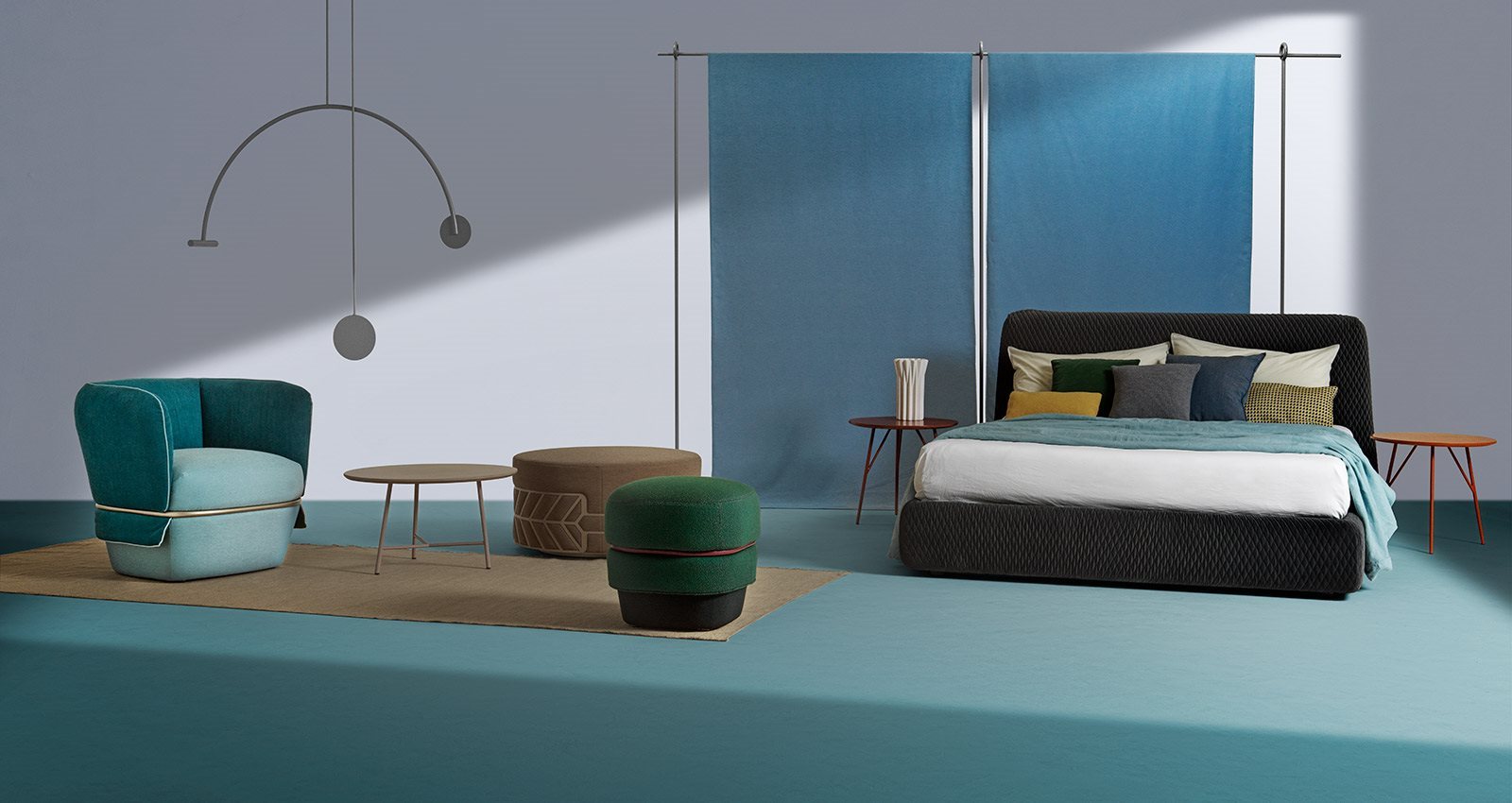 The sofa is completed by the new ottoman version of Chemise: an object boasting a multitude of functions, sometimes used as a seat, and others as a footrest. Roundness appears to be the order of the day for this small furnishing which lends its surroundings a fun and original style.