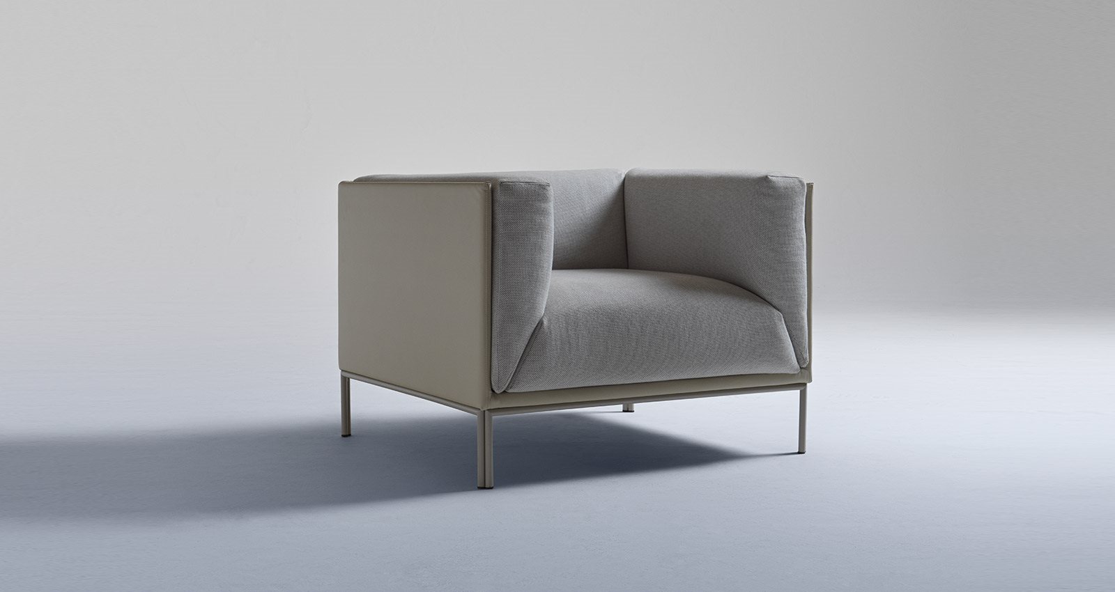 The Clou model’s personality and exceptional comfort are characterized by a linear and lightweight frame using big, soft cushions for the backrests, armrests and seat.