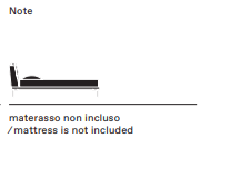 Bed. Wooden headboard and bed edge covered in polyurethane foam and polyester fiber lining. Headboard cushions in sterilized feather with insert in non-deformable polyurethane foam. Removable fabric cover. Beechwood bed slats. Legs in painted steel.