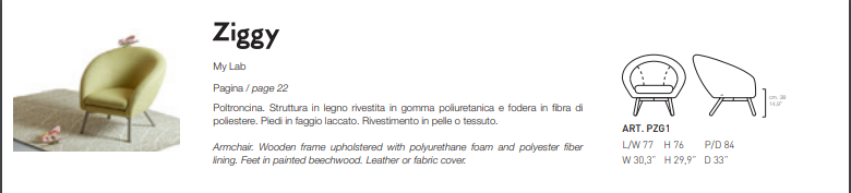 Enticing and round, the ZIGGY small armchair is characterised by a large, soft back and a geometric wood structure with clean lines, reminiscent of Nordic moderation. The shape is simple with the colour taking centre stage. Comfortable and “textural” the ZIGGY small armchair boasts a style reminiscent of the past while demonstrating contemporary appeal. Blending, retrieving and mixing different styles to discover novel harmonies and atmospheres: welcome to the world of MY home collection.