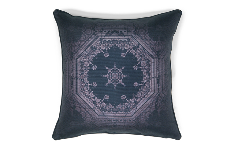 過去遇見未來。Magna Grecia軟墊的裝飾花紋靈感來自薩洛托巴洛克式教堂標志性的金色六邊形花格鑲板木制天花板。表面花紋無止境地循環往復,令設計頗具趣味性。