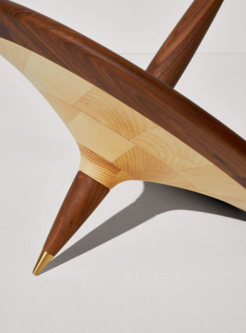 The singularity of this mirror is base don its caring proportions; a hand-made natural walnut shelf combines the softness lines of the mirror.