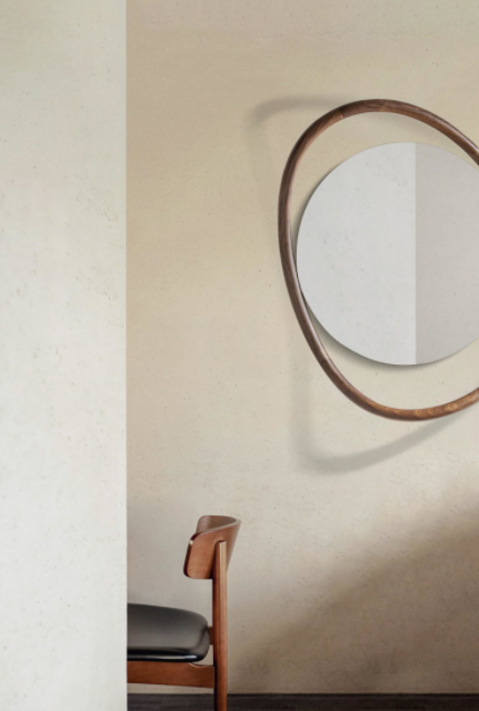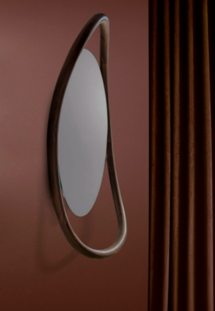 The singularity of this mirror is base don its caring proportions; a hand-made natural walnut shelf combines the softness lines of the mirror.