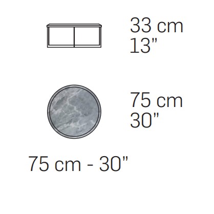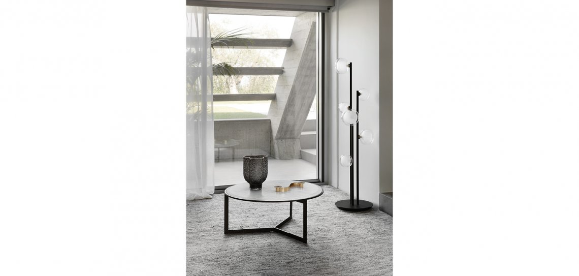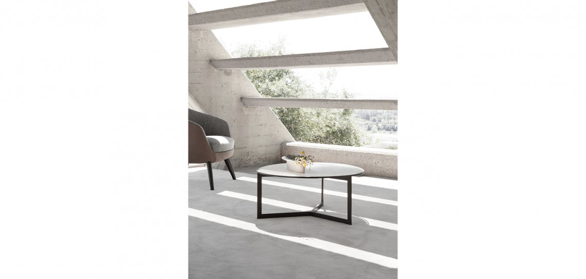 Round è il tavolino che si distingue per il piano superiore di medie dimensioni. Disponibile in diverse varianti in marmo.