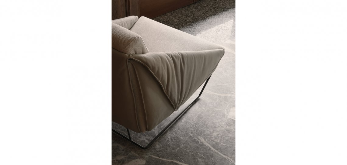 Gioia nasce dal desiderio di creare un design leggero e delicato. Protagonista discreta della zona living, arreda l’ambiente senza invaderlo. Disponibile in pelle, tessuto o versione mix.