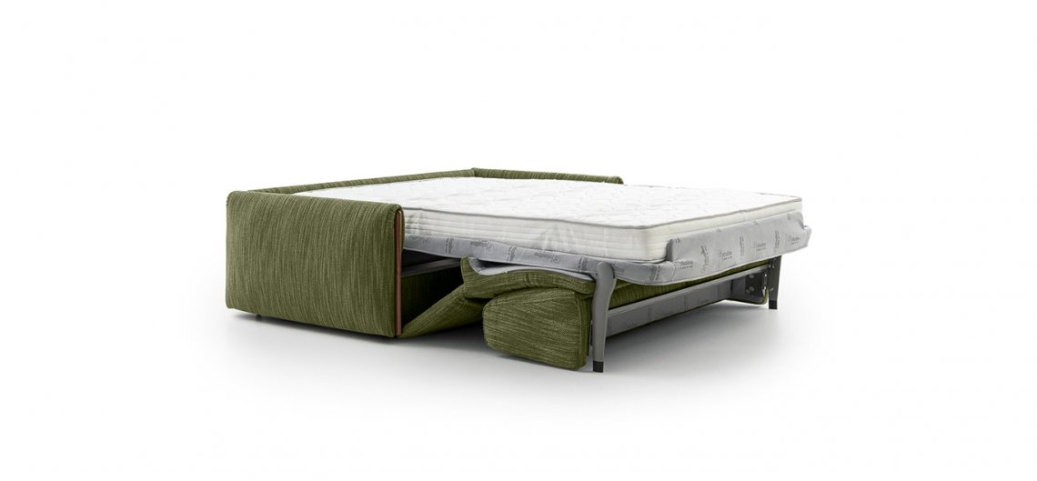 Semplice e confortevole ,dai braccioli sottili ma accoglienti, che a loro volta avvolgono un’anima di legno in noce canaletto, attribuiscono al modello uno stile caratteristico ed intramontabile. Con un semplice movimento si trasforma in un divano letto completo di un comodo materasso H16 cm. Progettato per creare scene d’atmosfera e ambienti ricchi di tradizione.