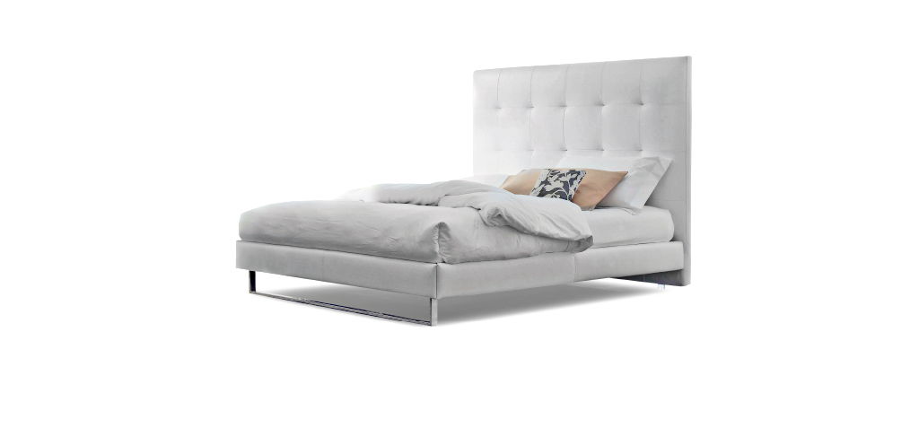 Elite, un letto da sogno: lo si capisce al primo sguardo, colpiti dall’imponente testiera trapuntata e dall’attento studio dei dettagli, come la base anteriore in metallo lucido e il piede posteriore in plexiglass.