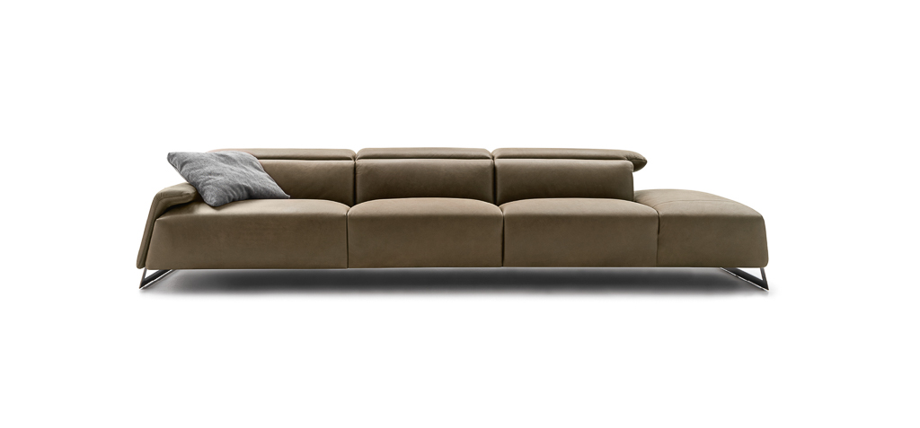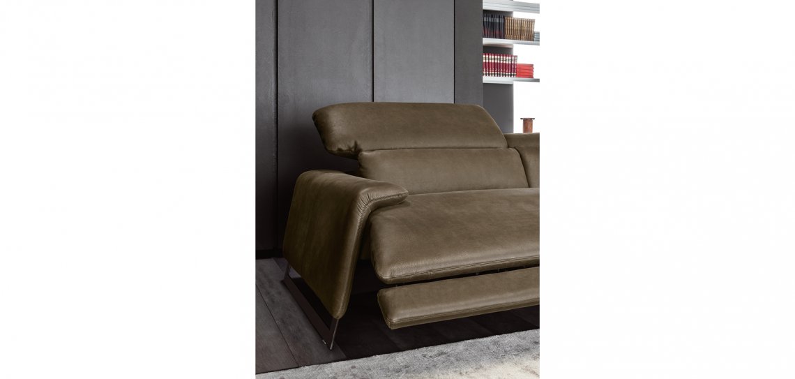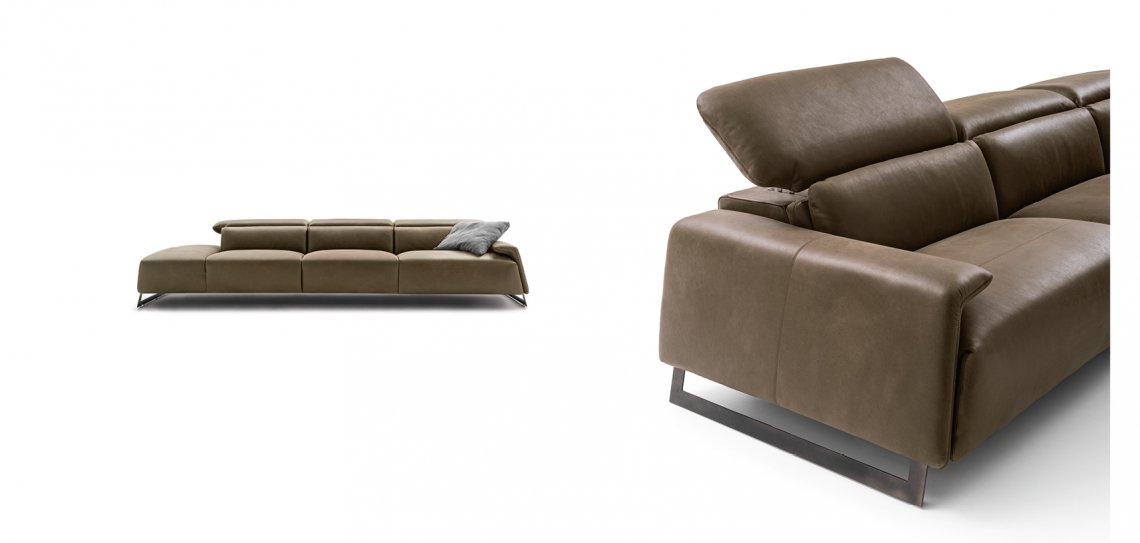 Funzionalità e forme si fondono in armonia. Il Canaletto è un divano imponente, ideale in grandi ambienti. è dotato di poggiatesta regolabili a mano o di meccanismo reclining. Disponibile in pelle o tessuto.