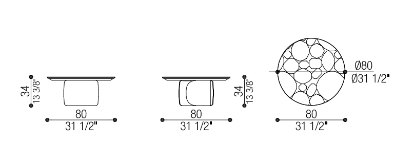 Il tavolino ovale con base in metallo Gabriel presenta un vivace contrasto materico tra la base metallica e il piano in pregiato marmo. La struttura cilindrica si apre su un lato per mostrare l’interno cavo.