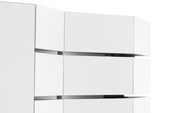 Contenitori in mdf dall’inusuale forma trapezoidale da combinare secondo il proprio gusto o necessità. Una collezione di volumi versatili e fuori dagli schemi ideali per risolvere, grazie alle diverse profondità, i problemi di spazio e progettati per trovare ospitalità in ogni ambiente della casa. Possono trasformarsi in originale cassettiera o comodino per la camera da letto, divertente mobile tv o credenza per il living.