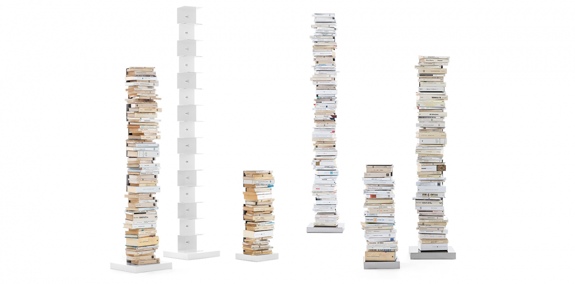 Original Ptolomeo è un contenitore che nasconde la sua forma per privilegiare il proprio contenuto, elimina il “superfluo” per mettere in evidenza il necessario, ovvero i libri. La libreria si presenta come una colonna in acciaio a cui sono unite delle sottili mensole anch’esse in acciaio. Mensole che scompaiono mano a mano che la colonna si riempie di libri, quando è colma Original Ptolomeo diviene del tutto impercettibile e sembra quasi che i libri posizionati su di essa si sorreggano da soli.