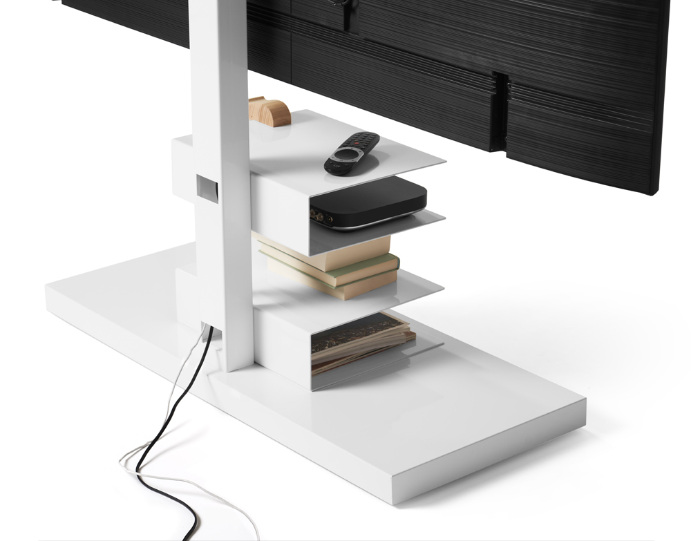 Essenziale, leggero, funzionale. Ptolomeo TV Smart è la naturale evoluzione di Ptolomeo TV Light, supporto multimediale della sempre più numerosa famiglia Ptolomeo. Le necessità cambiano, i consumi evolvono, Ptolomeo TV Smart li segue adattandosi alle sempre crescenti dimensioni delle televisioni di ultima generazione. La struttura rimane la stessa, una colonna raccoglicavi con due serie di mensole in acciaio - studiate per contenere le periferiche più conosciute - e supporto con adattatore TV nella parte superiore. Ciò che cambia sono i volumi, base e colonna sono aumentate per garantire la stabilità anche in presenza di pesi e ingombri più elevati.
