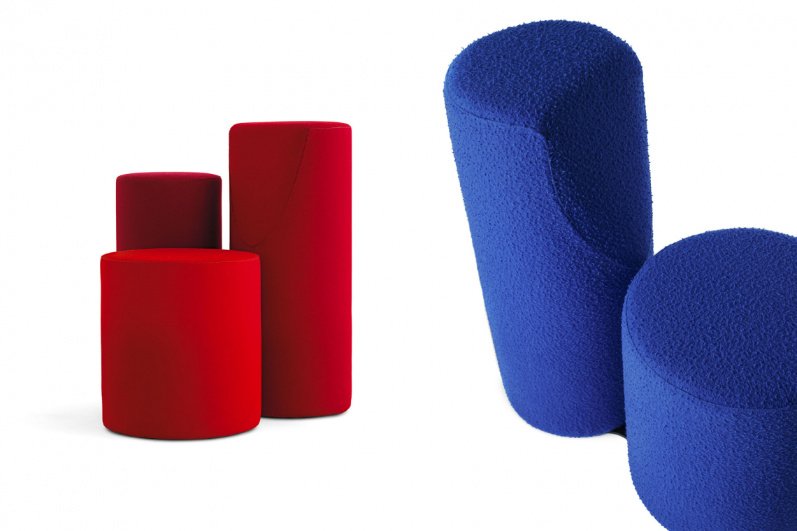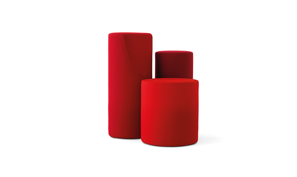 B.tri e B.duo, disegnate da Bruno Rainaldi, sono sedute non convenzionali da vivere da soli ma anche un invito alla convivialità: i cilindri sono elementi pronti ad accogliere, ogni qual volta si senta il bisogno di condivisione e vicinanza.