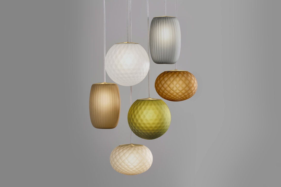 Lampade a sospensione in vetro soffiato satinato, caratterizzate dal trattamento del vetro secondo le tecniche rigadin, balloton, e ballotondo che conferiscono rispettivamente ad Ely una finitura rigata, ad Emy una trama romboidale e ad Evy un pattern sferico. Rosone in metallo rifinito con vernice poliacrilica in ottone satinato. Emissione di luce diffusa con attacco G9 per lampada LED retrofit disponibile a catalogo da ordinare separatamente. Cristallo, acciaio, ambra, bronzo, tabacco e verde le colorazioni vetro disponibili. Cavo elettrico trasparente. Disponibile rosone a scomparsa e rosoni per sospensioni multiple.