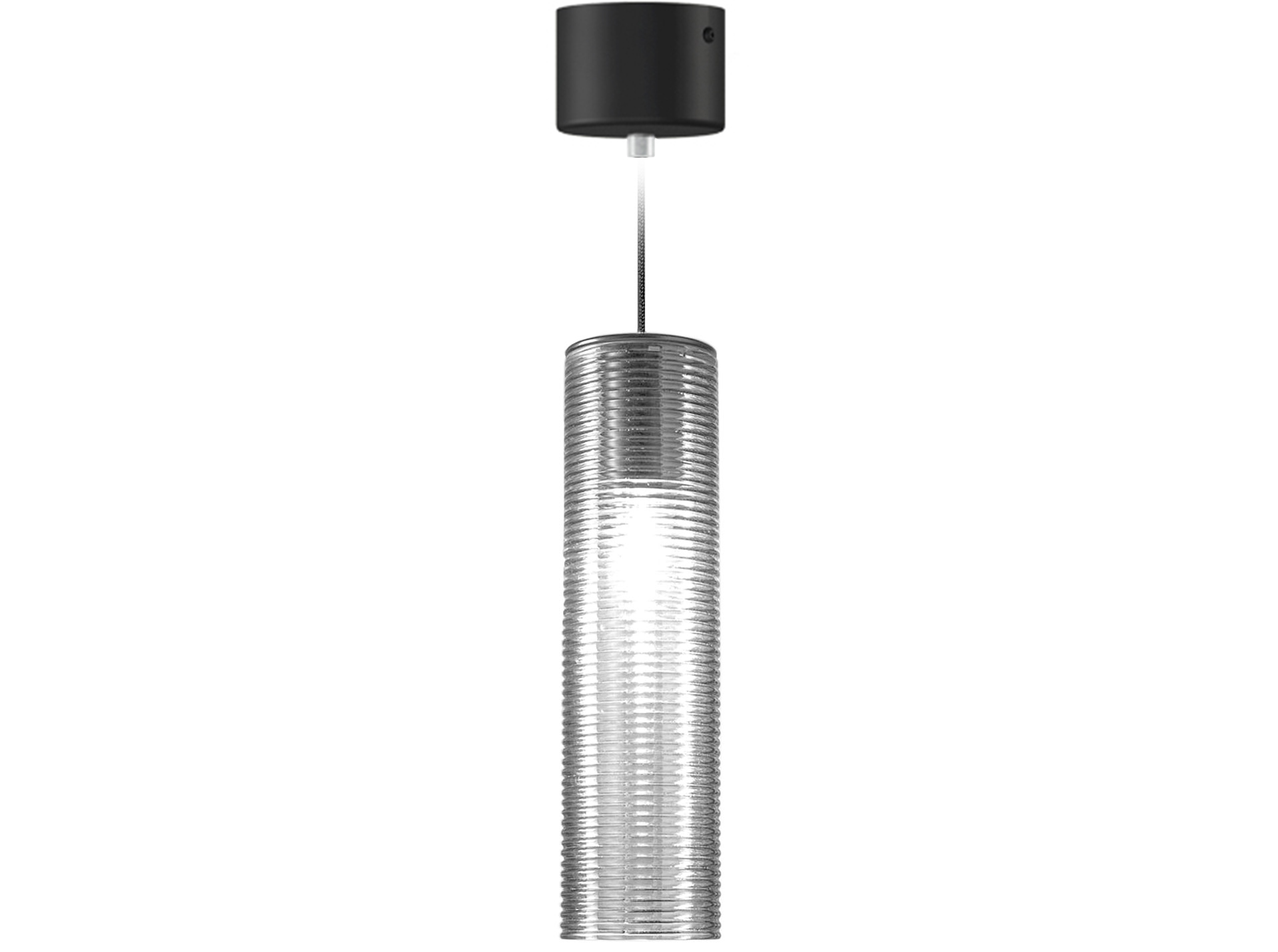 Lampada a sospensione in vetro soffiato con particolare finitura a coste dal gusto retrò. Rosone in metallo rifinito con vernice poliacrilica in color nero o nella nuova versione ottone satinato. Emissione di luce diffusa con attacco E27 e lampadina LED con filamenti a vista inclusa. Vetro soffiato disponibile in 7 colorazioni: cristallo, acciaio, ambra, bronzo, tabacco, verde e bianco lucido. Cavi elettrici in tessuto nero con possibilità di personalizzarne la lunghezza. Rosone a 8 uscite (+1 centrale). Ideale per strutture hospitality o zone living residenziali.