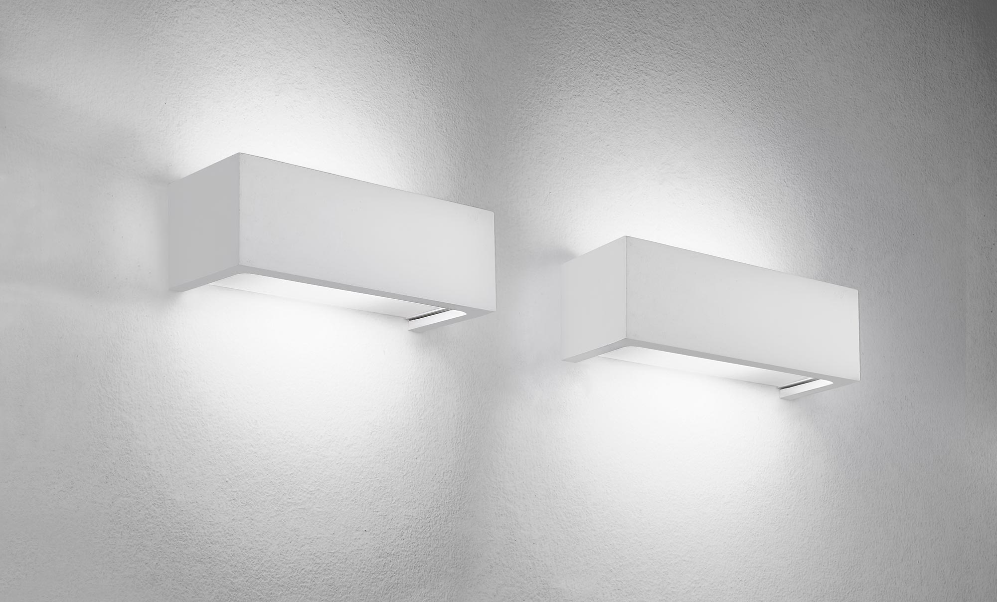 Lampade da parete LED in gesso. Montatura in metallo bianco e diffusori in vetro satinato.