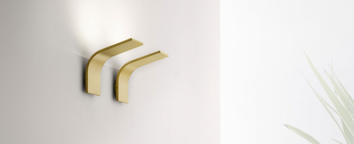 Wall lamp in extruded aluminium. Lighting source made of 1 LED module or 2 LED modules to mains voltage (220V). LED module equipped with special protection from power surges and transparent cover. Possible dimming with specific dimmer (not included) – available as accessory. White or mat brass polyacrylic paint or brushed and painted in titanium colour. Fixing with hidden lateral grub screw. Ideal for corridors or residential use.