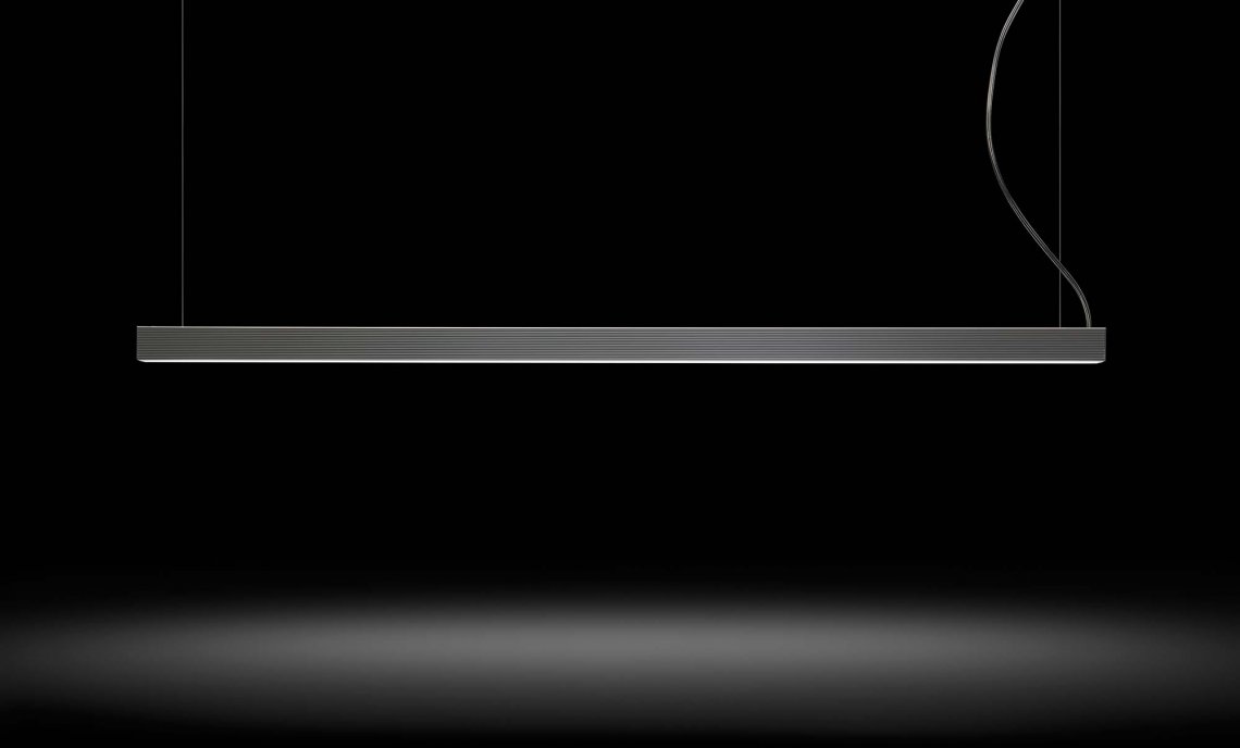 Suspension LED in extruded aluminium, painted white, black with reflector and screen.
