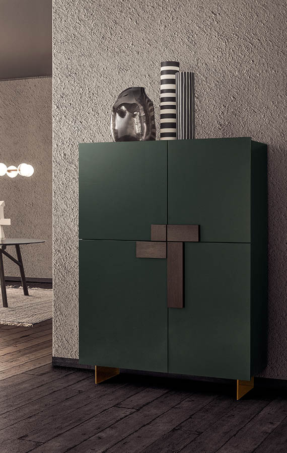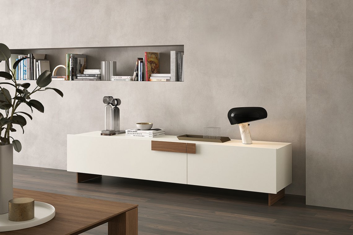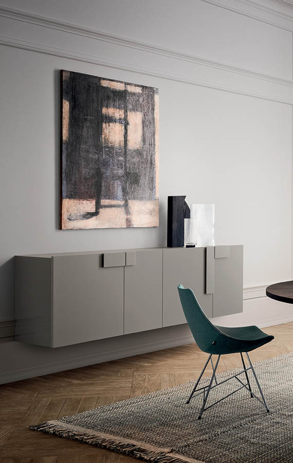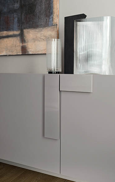 The doors, thin and protruding from the structure, are fixed to hidden hinges and put together beauty and need. Its modular solutions help solve successfully containing needs in any space. Ginevra enters in the living area and becomes the principal piece, giving elegance and class to the entire room.