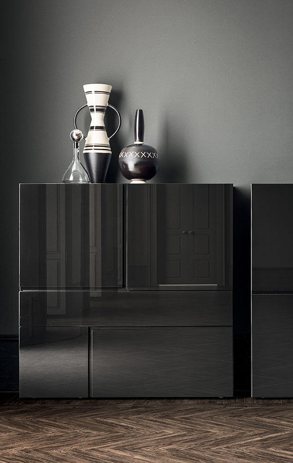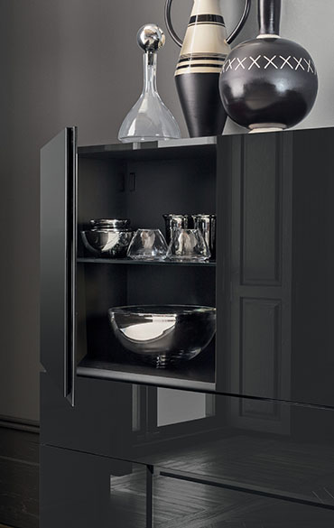 Shapes and surfaces pared back for the ultimate clean look, sharply squared corners and supreme functionality are the distinguishing traits of the Quadra sideboard, whose stand-out feature is the pattern of expertly crafted finger grips on the doors carved out of the solid wood.