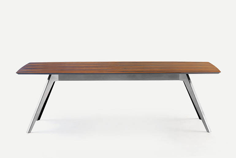 Beauty, stability and elegance mingle in a mix of equilibria and materials from which Delta is born. The gently tapered base makes the table harmonious and light, while fulfilling a static function for a structure with ultimate stability and sturdiness. The table top perfectly exploits the table base surface. Overall the finished table looks light and unconfined, creating a sensation of openness and excellent use of space. Delta was designed to fit in with the look and function of a living room, kitchen or even a study.