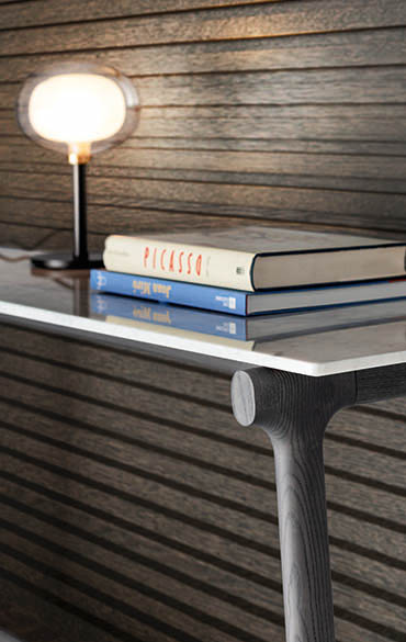 Philippe Tabet produces the Fushimi family of furniture, closely linked to the Inari series, inspired by one of Kyoto’s most important sacred places: the Fushimi Inari temple. The simplicity and harmony of these architectural elements so dear to Japanese culture struck a chord with the designer, who has chosen to echo the structure, traditionally formed of two vertical columns supporting a horizontal post on top. As a reinterpretation of this arrangement on a much smaller scale, Fushimi makes it the key feature of its design. Solid ash wood is the hero of each piece, lovingly milled and turned so that there are no sharp edges, instead displaying a delicate tactility. The same meticulous care is also evident in the joints, softly delineated to ensure the lines flow with unbroken continuity and connect the parts for a harmoniously seamless look. Symmetry, balance, elegance and formal minimalism form the underlying theme of Fushimi, which effectively conveys an idea of lightness and essentiality.