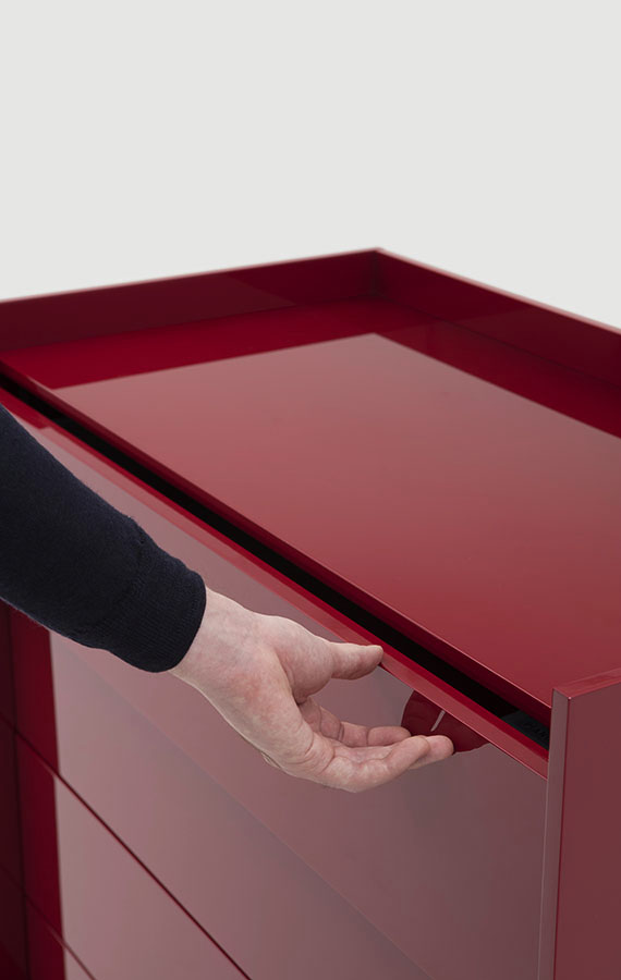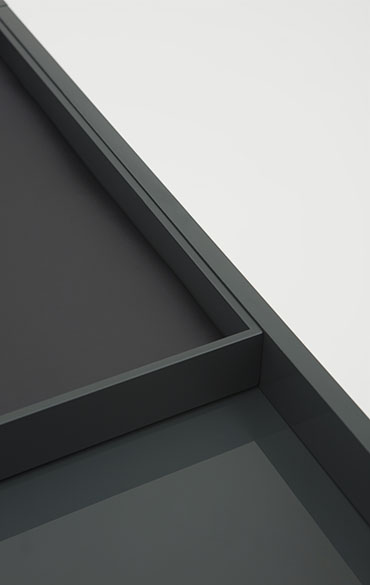 Essential things are never superfluous. The complements of the Kyoto bedroom set, the dresser and bedside table, are the result of the study of the absolute section between corner and straight line, in a measured composition of surfaces. The outer frame, more pronounced and deeper, encloses push-pull opening drawers, defining the entire volume of the structure ith stark gracefulness. The top transforms into an open niche, a discreet, elegant support surface, where you can add a further complement: a tray with an synthetic leather-covered base for storage of personal items and jewellery, which fits neatly inside the profile of the top. The cantilevered base floats, creating a void which surrounds the elements, giving them a sense of impalpable lightness.