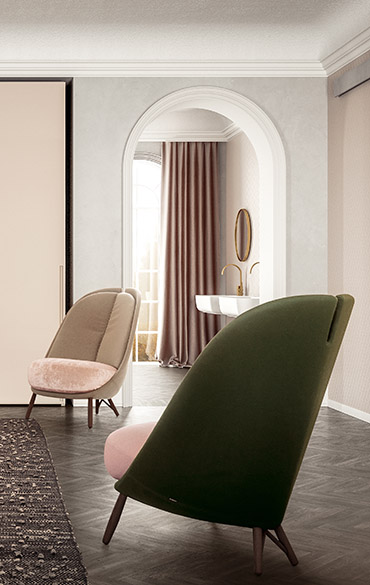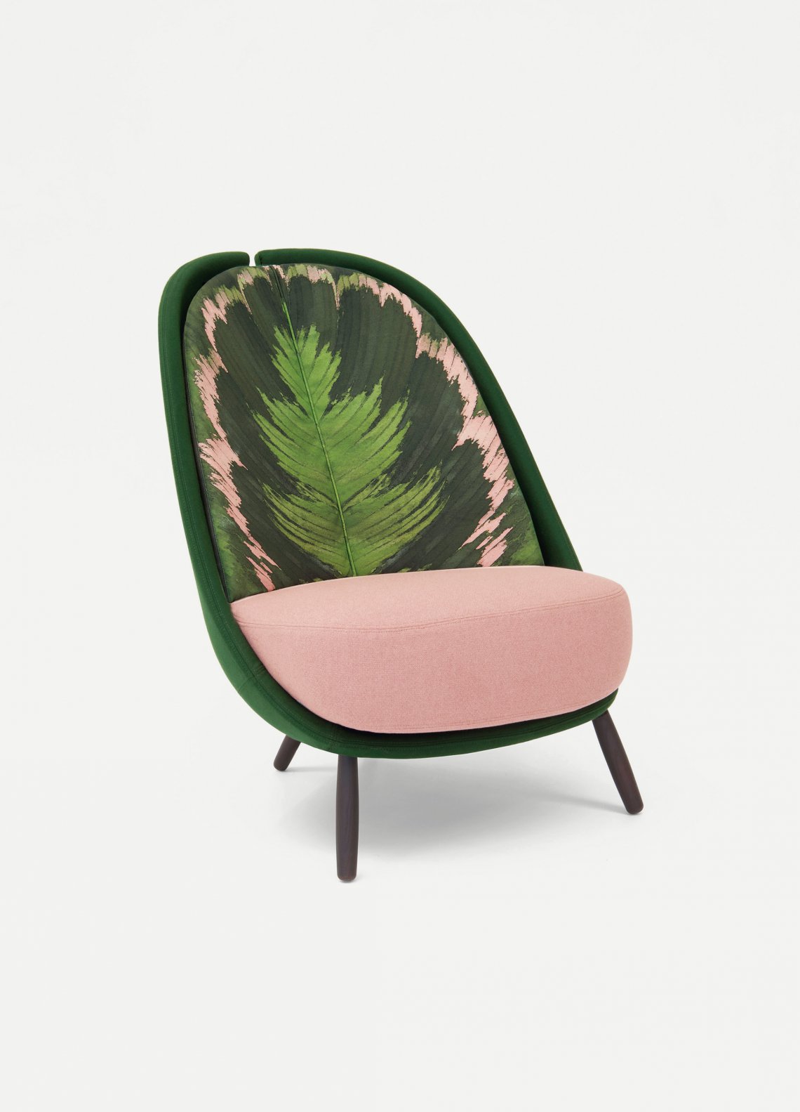 Eclectic and elegant, alluring and charismatic: Calatea, the armchair designed for Pianca by Cristina Celestino, is the synthesis of an exploration of forms that investigates the out-of-scale proportions of simple, primitive elements like leaves. The organic volumes and richness of the elegantly stylish details are inspired by the extraordinary qualities of the eponymous plant native to South America, which stimulates the senses on many different levels. The design is structured around the dialogue between botany and ergonomics, in-terpreted through a bold, enveloping and comfortable design featuring bright, vivid colours drawn from the plant’s own amazing natural palette. Sinking into the embrace of nature, allowing yourself to be enveloped by the beauty of a secret garden: this is Calatea’s delicate, evocative invitation.