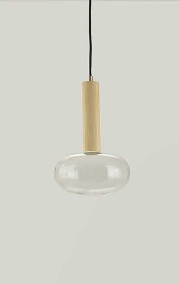 A knurled black or brass tube structure combines with a milk glass or clear glass shade to create a combination of materials that add a touch of lightness to rooms.