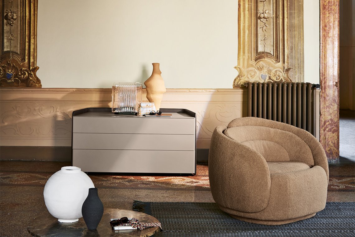 The new seat designed by Cristina Celestino for Pianca unfurls like a flower in Spring. And it is indeed nature, with her perfect geometries, that provides the inspiration for Peonia’s creative genesis. Sculptural and inviting, it captures the eternal becoming of every living thing in its forms; the tension to a constant and inescapable perpetual movement. The shell of the armchair is composed of different surfaces, arranged in an evocative crescendo that recalls the petals of a corolla. The sofa of the same design becomes an elegantly regal seat. The modular geometric forms allow infinite combinations to created, experimenting with various levels and heights, solids and voids. The entire structure is fabric upholstered in a continuum of colours and textures in the base and seat.
