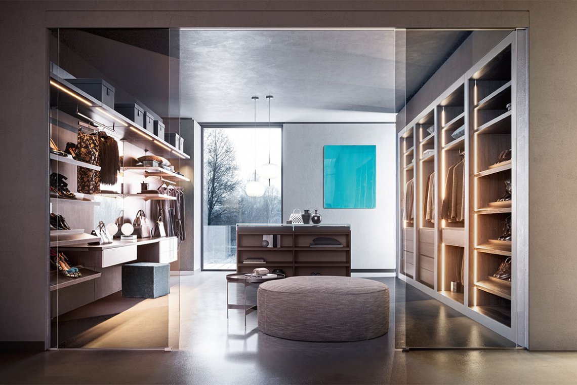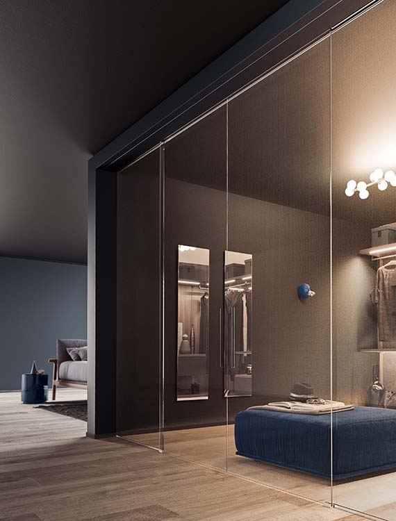 The major features of the sliding door VISTA are the total lack of frames or the very thin perimetral profile and it’s modularity to the centimeter, in order to separate or join spaces.