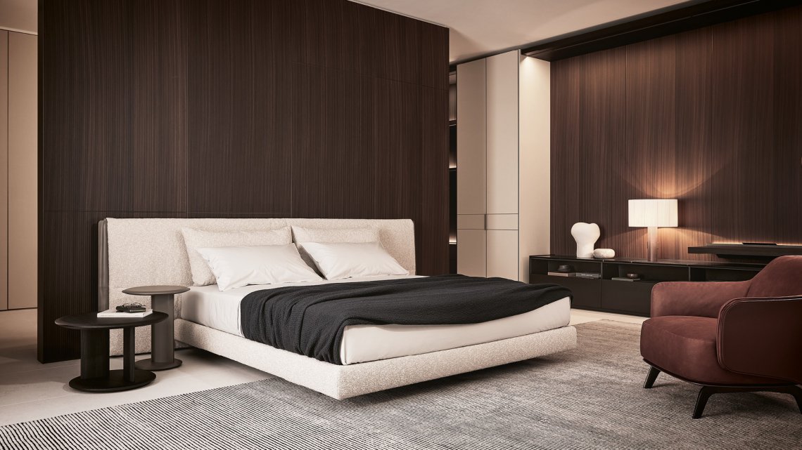 Yume is an upholstered bed that reinterprets a classic design through visual and material lightness, thanks to a soft headboard. Designed by Jean-Marie Massaud, it combines a timeless elegance with precious couture details, such as leather inserts inspired by the world of fashion.