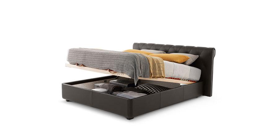 Roberto Lazzeroni為這款床設計了柔軟而富有女性特質的線條,將過去與當代自然結合。Bluemoon床以細膩而充滿想象的氛圍裝點臥室。床頭表面覆蓋Pelle Frau?軟皮,裝飾現代纓球包墊,采用細膩縫線制作,描繪出大號菱形圖案。床頭上側末端使用一個小型渦形裝飾,靈感來自經典Poltrona Frau扶手。Bluemoon床還可提供配備一只大容積收納倉的版本。