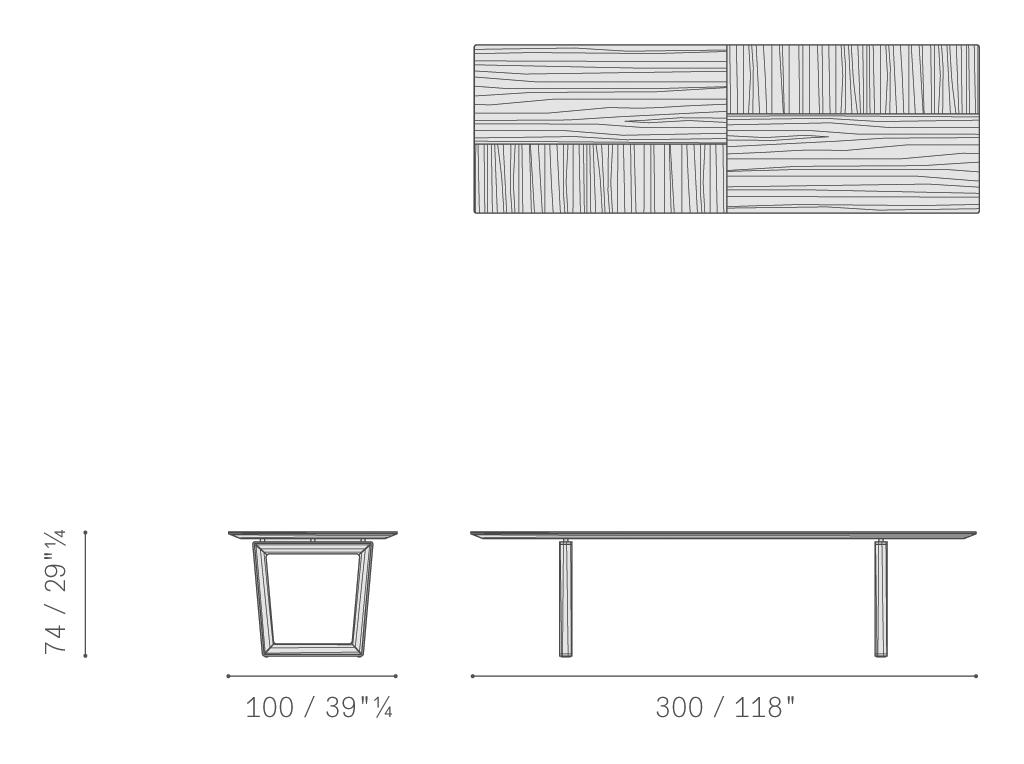 Bolero餐桌支撐結(jié)構(gòu)使用三角形截面實木??梢赃x擇雞翅木色或摩卡色梣木,或黑核桃木。桌面可以選擇木材或大理石。如果為木材,鑲貼雞翅木色或摩卡色梣木片,或黑核桃木,采用特色細(xì)木鑲嵌加工,紋理交錯,總是與桌腿搭配。以實木包裹周圍邊緣。220x110厘米和250x100厘米款,以及直徑為150厘米的圓形款Bolero餐桌,也可使用Calacatta Oro(卡拉卡塔金)大理石或拋光Emperador(金峰)大理石,邊角磨圓,并采用聚酯半拋光或拋光表面處理。直徑180厘米的圓形款也可搭配Lazy Susan餐桌轉(zhuǎn)盤,不是固定而是撐靠在主桌面上,由直徑不同的兩個圓形平面組裝構(gòu)成。