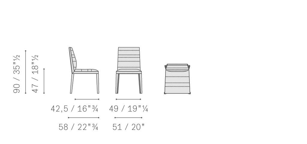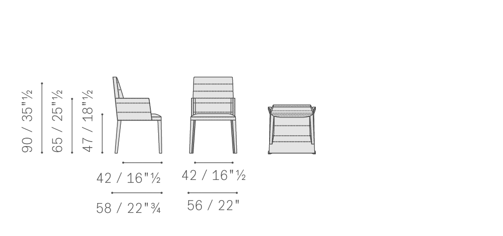 Louise椅子和小扶手椅結構采用梣木和櫸木實木,包墊填充聚氨酯泡沫。彈簧結構使用松緊帶。支腳使用雞翅木色、核桃木色或摩卡色梣木實木。覆蓋Pelle Frau?軟皮或布藝,裝飾有一系列水平雙縫線,在不規則高度上沿扶手內表面以及靠背前側和后側周圍伸展。