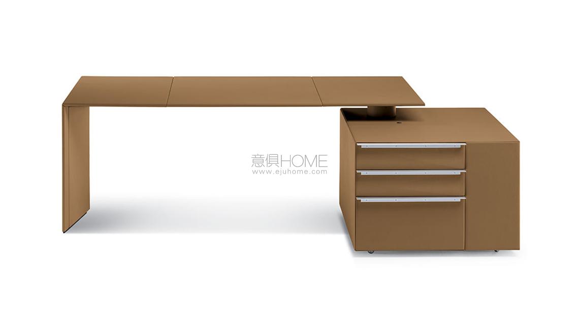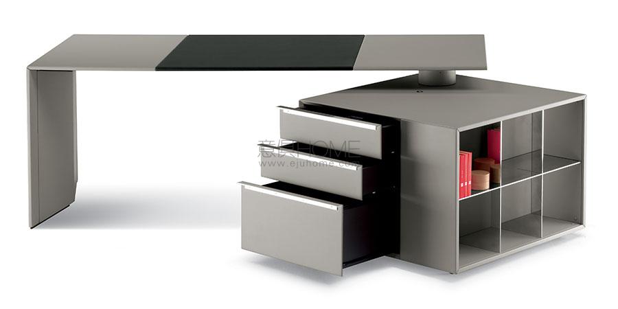CEO Cube Easy Desk寫字臺使用翻轉“C”形結構,可以搭配帶輪抽屜柜。所有的CEO Cube寫字臺均可以選配完全覆蓋Pelle Frau?的鋁制護板。