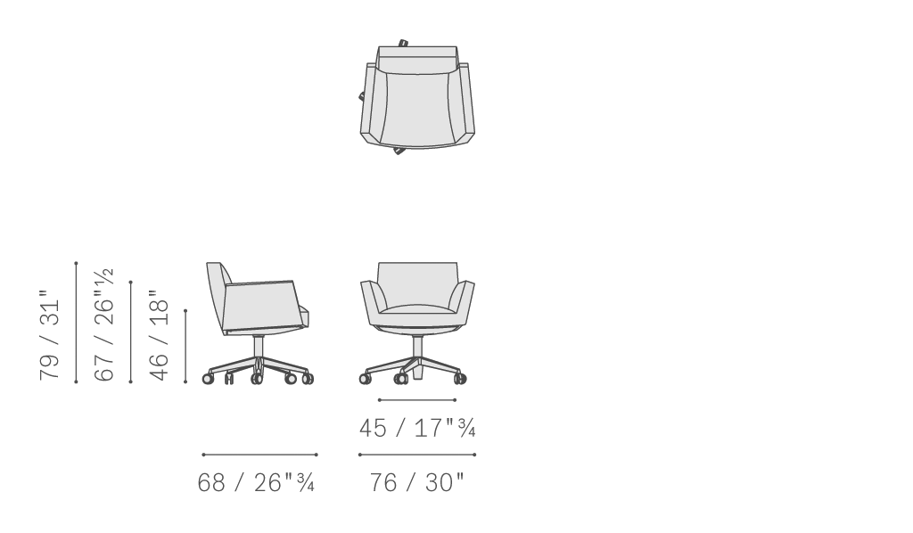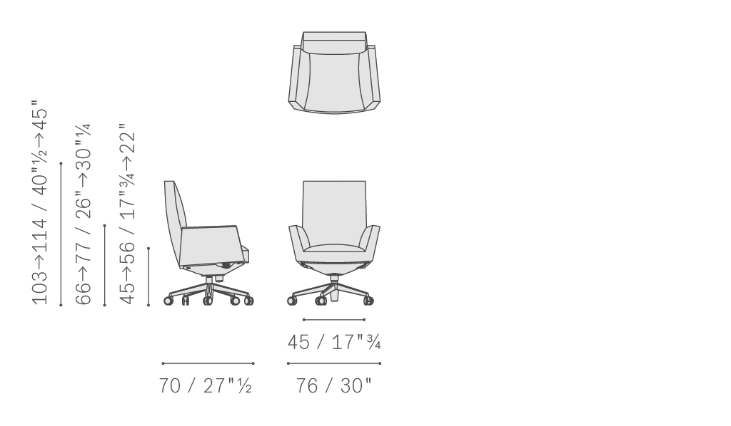 Chancellor President、Executive和Managerial版本可以調整高度并自動旋轉,靠背和坐墊配備精巧的“Syncron”振蕩機械系統,有5個連續的停留位置,從垂直到真正的躺椅位置。Chancellor Visitor扶手椅配有復雜的旋轉系統,憑借推力滾珠軸承,允許扶手椅自動轉動,并回到初始位置。Chancellor扶手椅支承基座采用鍍鉻或深灰色噴漆鋼。President、Executive和Managerial版本五支腳底座帶有軟質自鎖輪或滑軌,Visitor扶手椅四支腳底座帶有滑軌。扶手覆蓋軟皮,通過末端貼片固定在拋光或深灰色噴漆鋁制結構上,與底座配合。覆蓋Pelle Frau?軟皮,如有可能,也可延伸至“Syncro”運動蓋板上。它是Chancellor Conference滑軌扶手椅系列的一員。