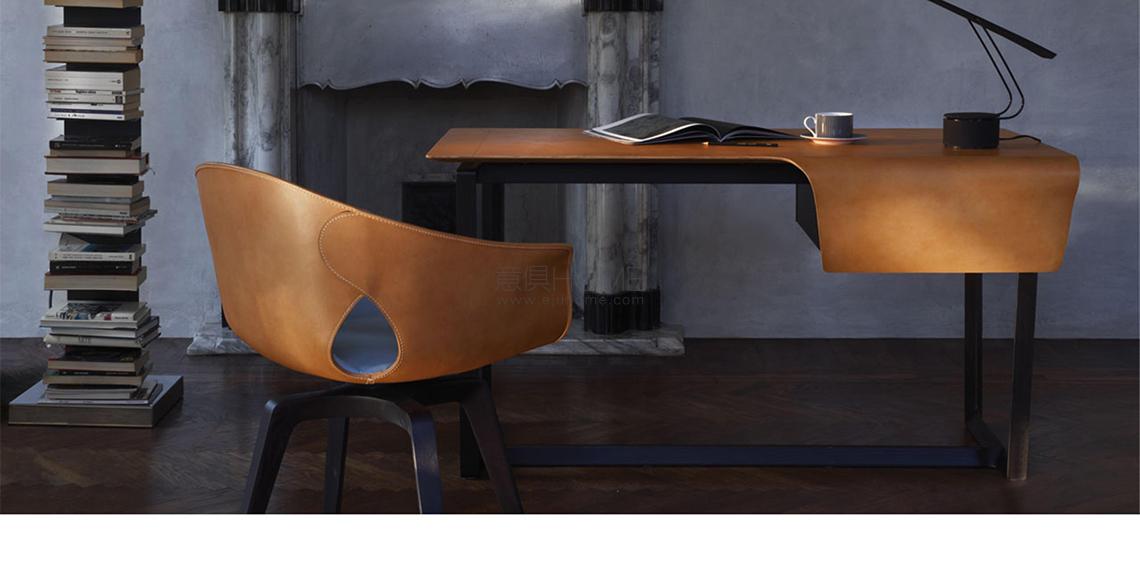 在設(shè)計Ginger小扶手椅時,Roberto Lazzeroni帶來一款精致、簡單的座椅。由皮革和軟皮構(gòu)成的鳥巢狀外殼,精簡、舒適。Ginger小扶手椅具有包容和保護感,裝飾典雅針腳,沿整個外周延伸。Ginger的設(shè)計初衷不僅是成為Fred寫字臺的天然伴侶,也可作為獨立座椅,旋轉(zhuǎn)版本完美適合書房,固定版本完美適合起居室餐桌。
