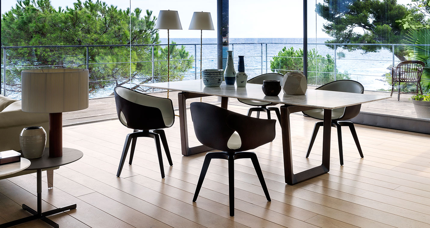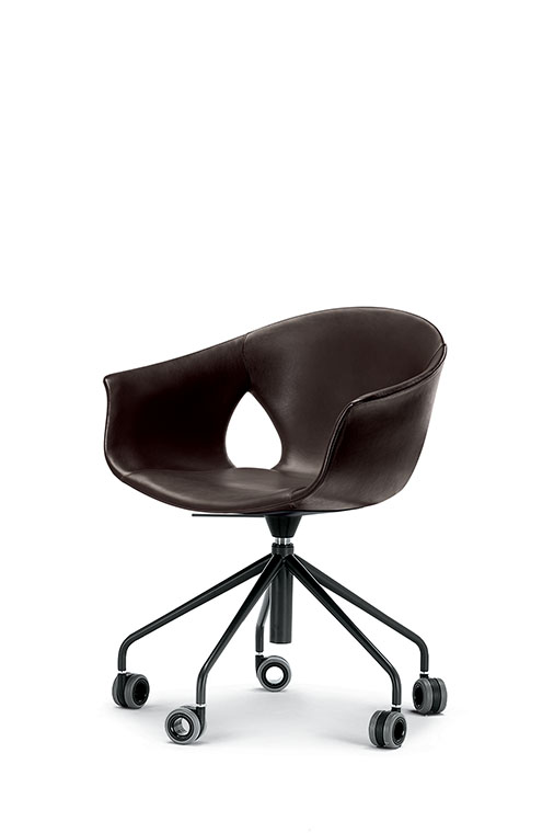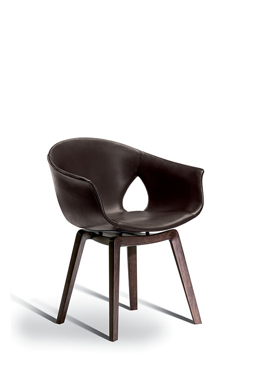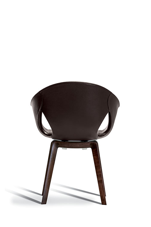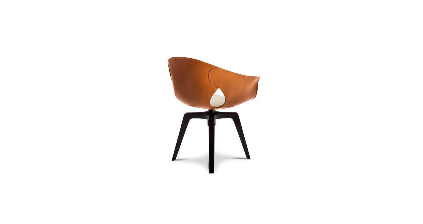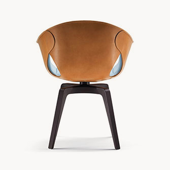 Ginger小扶手椅主體采用印壓成型合成熱塑聚酯。主體與基座之間的固定通過黑漆鋼支架實現(xiàn)。旋轉(zhuǎn)版本中,可以旋轉(zhuǎn)360°并回到初始位置。包墊采用聚氨酯泡沫。Ginger外部覆蓋厚度4毫米的無接縫Cuoio Saddle皮革或Saddle Extra皮革。內(nèi)部覆蓋Pelle Frau?軟皮,具有令人喜愛的材質(zhì)對比。四支腿底座使用雞翅木色或摩卡色梣木實木,具有三角形截面。