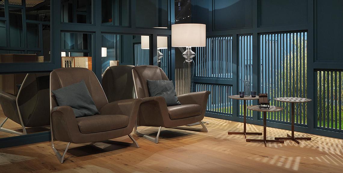 Luft扶手椅讓人想起空氣、云彩和自由飛翔的鳥兒。Walter Maria de Silva在設計時考慮流體設計,好似懸浮在空中,同時沒有遺忘人體力學和舒適。扶手和座椅交織呈一條理想的線條,具有典雅的曲線,好似海鷗的翅膀。支腳跟隨側面向外打開,強調了和諧的形狀節奏。Luft大方包容身體,體現即刻放松的概念。憑借填充鵝絨的選配靠腰,極致擴大舒適效果。