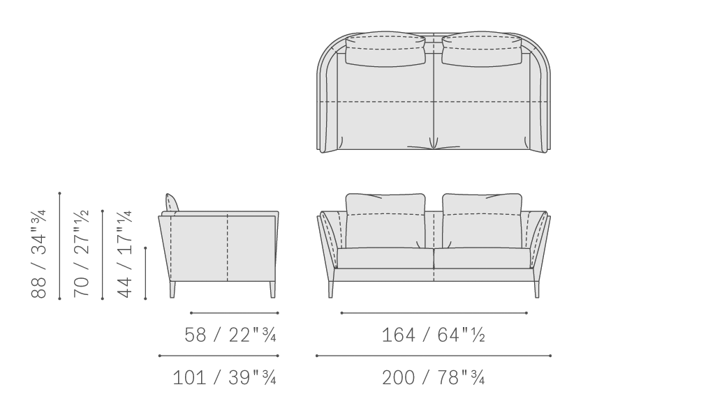 坐墊、靠背和扶手結構采用櫸木和陳年楊木,圍欄則使用樺木膠合板和中密度纖維板墊層。包墊中使用聚氨酯泡沫和聚酯棉。座墊彈簧結構使用松緊帶,填充鵝絨和聚酯絮絨,添加聚氨酯泡沫嵌塊。座椅和靠背靠墊填充鵝絨,添加泡沫穩定嵌塊。支腳為黑色漆繪櫸木或鍍色鋼表面處理鋁材。