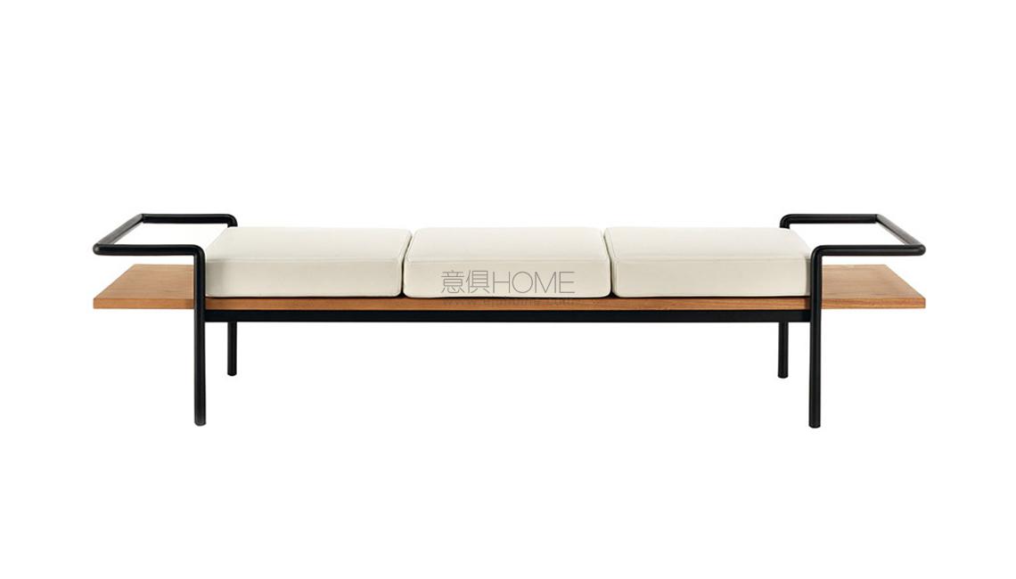 T904長凳結構由黑漆鋼管精準描繪。坐墊極為簡單,桌板采用楊木膠合板,貼面為柚木色梣木,能夠與三個靠墊隨意搭配,簡單地放在木制平面上。靠墊包墊采用聚氨酯泡沫和滌綸填充。表面覆蓋Pelle Frau?軟皮或可拆洗布藝。