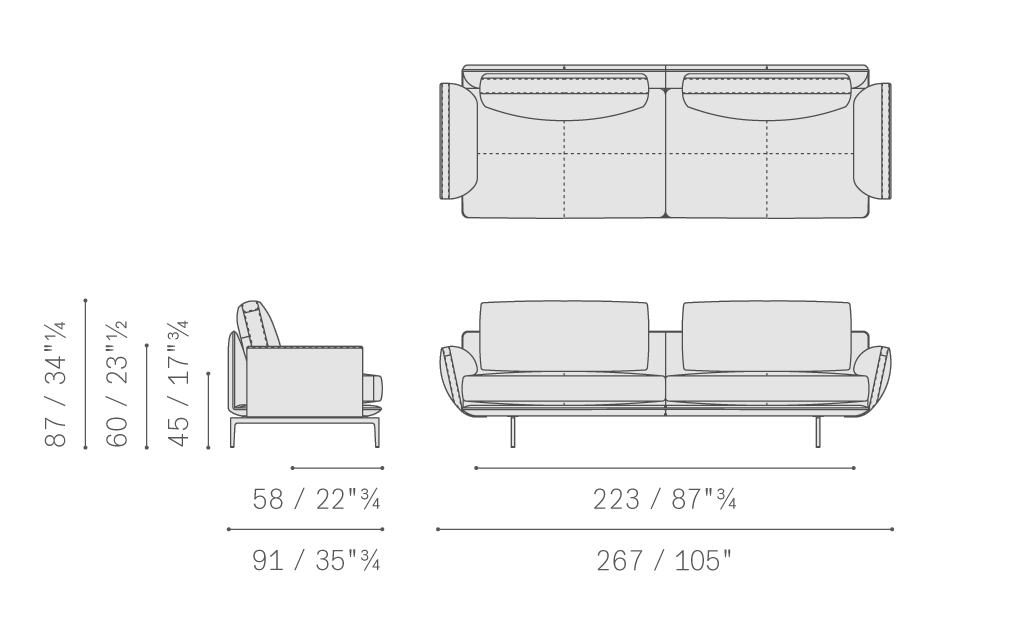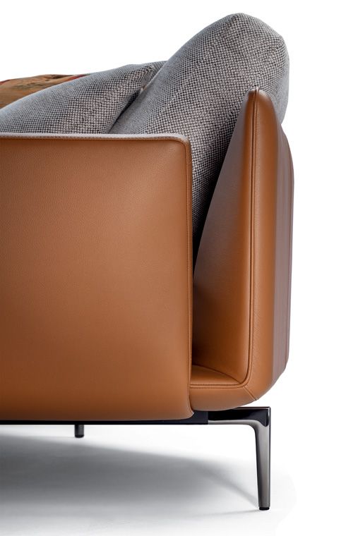 Get Back表面看來休閑肆意,卻隱藏著對細節的絕對關注。座板和靠背匯聚成一個極為輕盈的元素,周圍一圈極細滾邊,好似鉛筆痕跡,包圍整個輪廓。圓角令表面更具吸引力,皮革扶手裝飾珍貴縫線細節,從側面環抱座板,強調柔軟形狀。