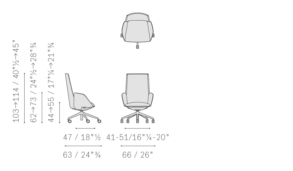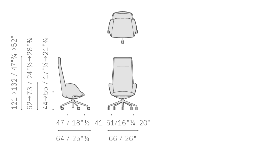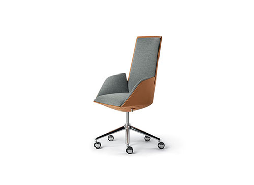 Cercle辦公室靠背椅中,對人體力學(xué)的研究尤為深入。同步機械裝置與整體骨架相結(jié)合,經(jīng)過Poltrona Frau的進一步優(yōu)化,能夠帶來絕佳的舒適性能。結(jié)構(gòu)采用聚氨酯,配金屬內(nèi)芯。內(nèi)部填充具有不同密度的聚氨酯泡沫,為不同區(qū)域帶來更高舒適度,同時絎縫聚酯棉。五支腳底座采用拋光鋁或黑色噴漆鋁,通過連接支桿與底盤相連,支桿中裝備空氣彈簧,根據(jù)底座所用表面處理進行噴漆。支撐點為“W”型軟質(zhì)或硬質(zhì)自鎖輪。表面覆蓋Cuoio Saddle Executive鞣制皮革和Pelle Frau?皮革,完全沒有縫線,彰顯座椅的外形美感。Cercle也可以完全覆蓋Pelle Frau?皮革,或者進行搭配,在骨架上覆蓋皮革或鞣制皮革,內(nèi)表面覆蓋皮革或布藝。
